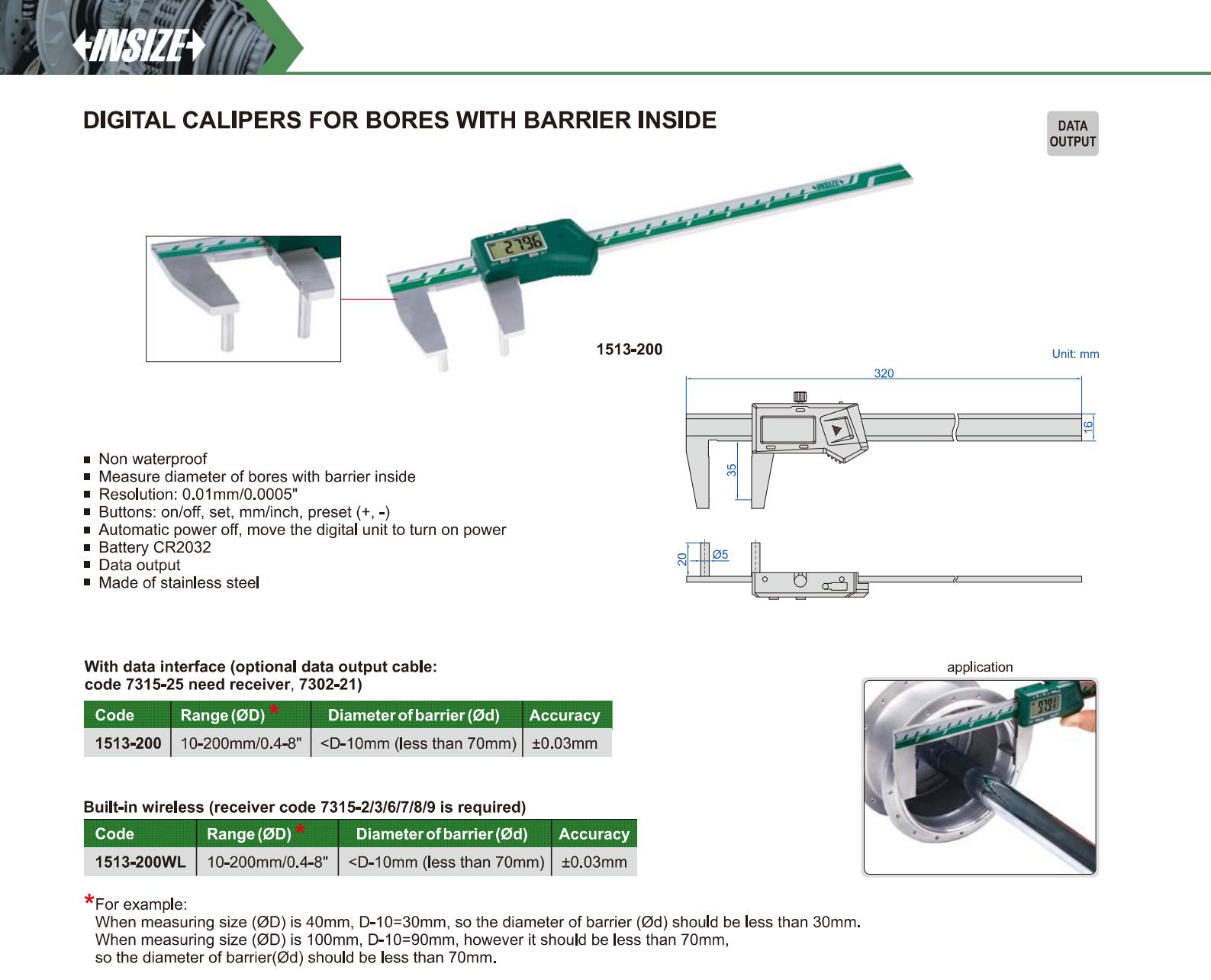 Digital Calipers For Bores With Barrier Inside