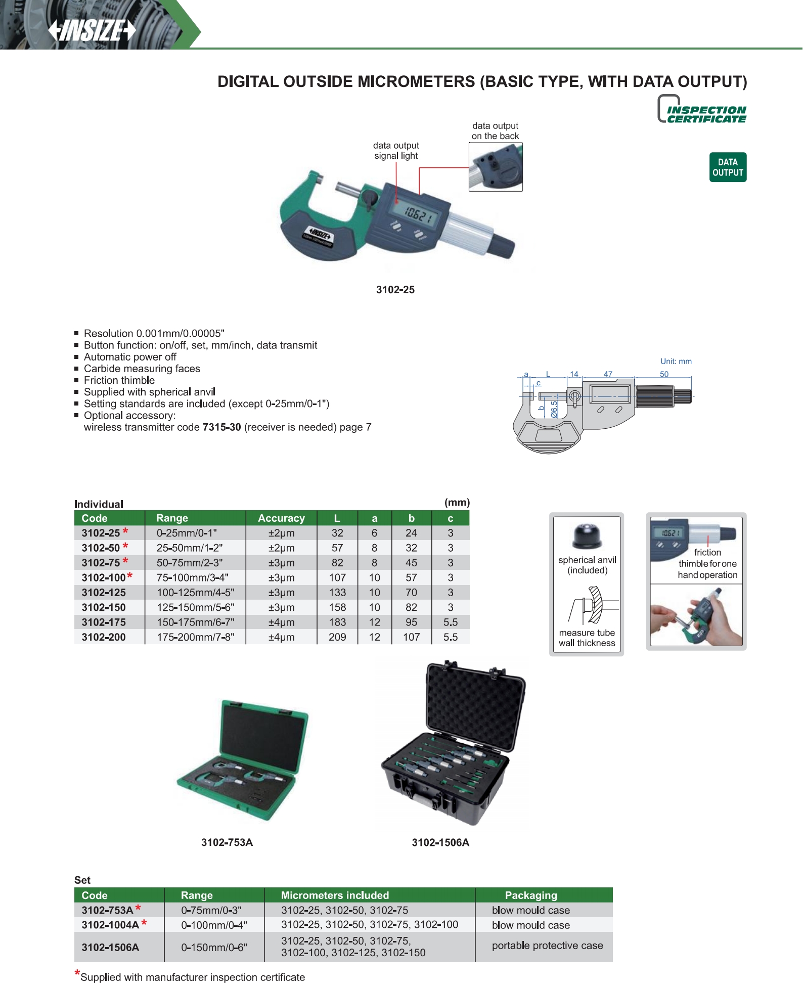 Digital Outside Micrometers (Basic Type, With Data Output)